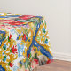 Years ago I got a matching runner from elsewhere and was so thrilled to find this same pattern offered as a tablecloth. The material is very high quality and it is well-constructed. Also it got here just in time for my party tomorrow! Would buy from this seller again. Colors are very sharp. It’s perfect. Well done