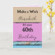 Make a wish add name pink 40th birthday card