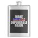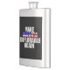 The product is a good size and came exactly as it was pictured. The lid is not attached to the flask, which could be dangerous on drunken nights... The print came out surprisingly well and looks very sharp. Would definitely recommend.