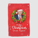 Trump in a wraith christmas card on red background with white snowflakes. Make America Great Again and Make Christmas Great Again patriotic card for americans!