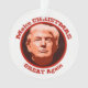 Here's a funny Christmas ornament that any Trumpster would love! It has an artistic portrait of Donald Trump in a circular red frame border. The curved text above and below the image says "Make CHRISTMAS GREAT again". The back of the ornament has the same image on a black background with white text. You may customise the text on the back, if you'd like. You KNOW you know someone who wants this!