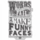 A Victorian, old-timey typographic design letting everyone know that words aren't always your preferred way to communicate. "Words sometimes fail me. When that happens, I make funny faces."