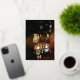 Make it December to Remember is a Christmas/Holiday Gathering Foil Invitation featuring foil golden Trees, a cute little girl and a baby, a raven, and a fox. The invitation text can be updated at the back of the card. The colours are dark black to burned sienna, brown, and golden tones mirroring the natural environment at dark. These dark colours will let the foil elements shine.