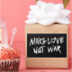 This artwork features a hand drawn typography poster with the phrase Make Love Not War.