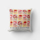 Fun MAKE MUCH ROOM FOR CHRIST Christian Christmas Mushrooms Throw Pillow with CUSTOMIZABLE TEXT which reads 'Make much room for Christ this Christmas'. This text can be personalised with your name or other text. The design of this Christian Christmas pillow shows a grid of mushrooms wearing santa hats with colourful background panels of mushroom, banana yellow and dusky pink. Also with black background.