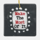 Bold text reading "Make The Most Of It" is centred against a grey background. The black text sits on a white rectangle with large textured white dots around it, providing a playful contrast against the solid colour backdrop.