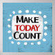 "Make Today Count" is a cute inspirational or motivational quote with a white accent shape surrounded by white textured whimsical dots.