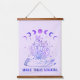 Celestial wall tapestry features purple moon phases with enchanted hand holding a cluster of crystals and "Make today magical" text.