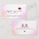 Stylish and feminine contact-card for a makeup artist with fields for name, profession and address, and with the graphic image of small red lips on a pale pink watercolor background... to make her great first impression