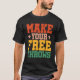 I give wanted to give this a 4 instead of a 5 because these Basic DARK T0shirts run unexpectedly SLIM or Narrow. Which is great if you do not have a potbelly, but I have a paunch. It isn't the shirt's fault that I've got a beer belly. The design and shirt itself is a quality cotton shirt. The color is more of a deep purple, but still a very pretty color. The Basic DARK T-shirts run a bit SLIMMER than the Basic Ts. The neck is a fraction narrower (or seems to be narrower) also. I'm a paunchy middle-aged woman and my neck is 12 inches (31cm) thick and the neckline fell about the same as in the photo of the man, and I had the desire to tug it a bit. So if you're a thick necked man or like loose shirts, be aware these are slimmer shirts. Once I get rid of my lockdown paunch it'll look great. The shirt washed well in cold water with no apparent bleeding. We don't have a dryer, so it hung dry. Did not shrink. Love the colors and the design. The design looks smaller on my shirt than it does on the model on-line. But still, it looks good on the shirt. The printing looks as it does on the model, just the size seems fractionally smaller. Washed garment in cold water, hung dry and design appeared unaffected.