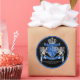 Create your very own aristocratic Coat of Arms, Emblem, Insignia or Family Crest with this beautiful, classic escutcheon or shield design. Cobalt Blue patterns decorate a shield topped with silver crown and flanked by mediaeval heraldic lion or griffin. A matching top banner holds your custom wedding date / birth date / slogan or battle cry. The shield has space for your monogram initials. Bottom banner carries your family name. There is also space below for your favourite quote, motto or message. Replace the sample text with your own for a personalised gift. A gender neutral design that will work for families, groups, couples or individuals. Makes a wonderful gift for Wedding, Anniversary, Birthday, Retirement, Promotion, Father’s Day, Bachelor Party, Wedding Shower, Graduation, International Heraldry Day, Mediaeval or Fantasy-themed parties and other special occasions.