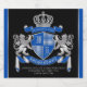 Create your very own aristocratic Coat of Arms, Emblem, Insignia or Family Crest with this beautiful, classic escutcheon or shield design. Cobalt Blue patterns decorate a shield topped with silver crown and flanked by mediaeval heraldic lion or griffin. A matching top banner holds your custom wedding date / birth date / slogan or battle cry. The shield has space for your monogram initials. Bottom banner carries your family name. There is also space below for your favourite quote, motto or message. Replace the sample text with your own for a personalised gift. A gender neutral design that will work for families, groups, couples or individuals. Makes a wonderful gift for Wedding, Anniversary, Birthday, Retirement, Promotion, Father’s Day, Bachelor Party, Wedding Shower, Graduation, International Heraldry Day, Mediaeval or Fantasy-themed parties and other special occasions.