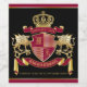 Create your very own aristocratic Coat of Arms, Emblem, Insignia or Family Crest with this beautiful, classic escutcheon or shield design. Crimson red patterns decorate a shield topped with golden crown and flanked by mediaeval heraldic dragon. A matching top banner holds your custom wedding date / birth date / slogan or battle cry. The shield has space for your monogram initials. Bottom banner carries your family name. There is also space below for your favourite quote, motto or message. Replace the sample text with your own for a personalised gift. A gender neutral design that will work for families, groups, couples or individuals. Makes a wonderful gift for Wedding, Anniversary, Birthday, Retirement, Promotion, Father’s Day, Bachelor Party, Wedding Shower, Graduation, International Heraldry Day, Mediaeval or Fantasy-themed parties and other special occasions.