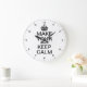 Make your own Keep Calm and Carry On wall clock for your home or office. Using our easy to customize template it is simple to changed, re-sized, move or delete any of the text. The white background color can be edited too - let your creativity flow!