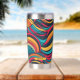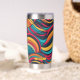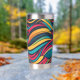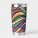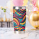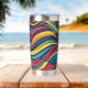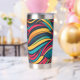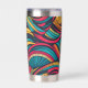 Make your own personalised abstract patterned name thermal tumbler from Ricaso - designed with a colourful fun patterned background in tones of pink, yellow and blue,