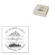 The design features round rustic typography with your custom address around the outside of the stamp with your name across the center of it. Above the name is a mountain and below a forest landscape which gives this stamp a rustic feel.