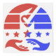 This design features a circular design with striped and colourful shapes, a handshake prominently displayed at the bottom, a ballot shape in the middle with a check mark icon created as negative space, and five arranged stars at the centre.