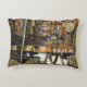 The cushion is small to medium sized. It can be washed. It is well constructed. The material used is pleasant and feels decent quality. It has a very slight plush feel which is good. It is well labelled and its care clearly stated. Theres nothing not to like about it. All in all a good item. The deduction of one star overall is due to long delays in delivery to the UK. It's not clear if this was due to Zazzle or somewhere else in the chain as I did not receive status updates of dispatch or progress. I cannot comment anymore on that other than to say that was our experience but it may not be the same for you. The printing was surprisingly close to what we were expecting. Its an art piece and on material so its hard to assess the precision of printing but it seems close to the original. The soft lines are reproductions of the original. The colour is a fair reflection of the painting. This was printed in the US and it looks like US quality. No issues.