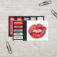 Makeup artist business card design done in red, black, grey and white colours featuring an eye shadow palette and shiny red lips over white background. This stylish profile card is perfect for beauticians, cosmetologists, hair and makeup beauty salons and other similar professions. If you need any help with this design, feel free to contact me.