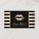 Makeup Artist Gold Kiss Modern Black & Gold Stripes Appointment Business Cards.