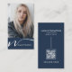 These business cards go beyond conventional contact information tools; they serve as a reflection of your unique style and expertise. The cool, trendy, and aesthetic design layout in navy blue and white exudes sophistication, ensuring that your card captures attention. Featuring a QR code, clients can effortlessly access your portfolio, services, and contact details with a quick scan, showcasing your commitment to modern and convenient interactions.