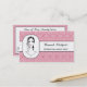 A girly mod pink and black art deco style hair and beauty salon appointment reminder business card for the professional makeup artist with a vintage drawing of a beautiful woman powdering her face with a soft pink powder puff. This pink geometric background design can be personalised by adding the name of the licensed cosmetologist or certified beautician.