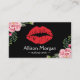Makeup Artist Red Lips Elegant Floral Decor Business Card