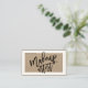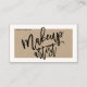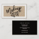 An elegant modern, stylish makeup artist business card with elegant script hand lettering style typography on a rustic brown kraft, colour block with white border and a black background at the back. Both background are fully customisable