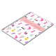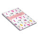 A notebook for jotting things down. It has a pattern formed using beauty and grooming products and cosmetics like perfumes, facial and skincare lotions, lipsticks, nail polishes, hair dryer, comb and mirror. Trendy and chic in sweet and girly colour palette of pink and purple. Personalise with girl's name.