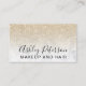 An elegant modern, stylish makeup artist business card with elegant modern simple hand lettering style typography in white on a faux champagne glitter and white marble trendy and elegant background. all text is customisable, add your social media.