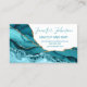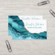 An elegant modern, stylish makeup artist business card with elegant modern simple hand lettering style typography a teal blue agate trendy and elegant background. All of the text is customizable.