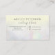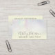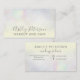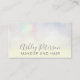 An elegant modern, stylish makeup artist business card with elegant modern simple hand lettering style typography on a pearl nacre iridescent holographic and pastel yellow trendy and elegant background. all text is customisable, add your social media.