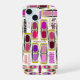 Iphone girly shell with makeup design: powder, red, gloss, lipstick, eyelid shadow in a stylized palette.