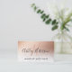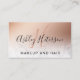 An elegant modern monogram , stylish makeup artist business card with elegant modern simple hand lettering style typography in white on a faux rose gold foil metallic andwhite marble trendy and elegant background. all text is customizable, add your social media.