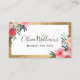 An elegant modern double letters monogram , stylish makeup artist business card with elegant modern simple hand lettering style typography with an elegant chic yellow gold foil geometric frame border and pink, red hand painted floral watercolor bouquet. all text is customizable, add your social media.