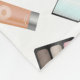 This fleece blanket features Destei's illustrated pattern of various kind of makeup products. These makeup products include palettes, powder with mirror, makeup brushes, lipstick, lip gloss, foundation and mascara. There is also a personalizable text area for a name.