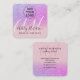 An elegant modern double letters monogram square business card , stylish makeup artist business card with elegant modern simple hand lettering style typography on a faux pink purple glitter and pastel blush pink trendy and elegant background. all text is customizable, add your social media. add your logo.