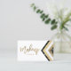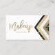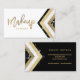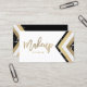 An elegant modern, stylish makeup artist business card with elegant script hand lettering style typography in faux gold with a faux gold glitter, foil, black and white marble triangle chevron stripe colour block on black and white colours background. If you need any customisation, don't hesitate in contacting me