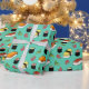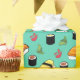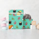 Tasty looking gift wrapping paper that'll make you hungry just by looking at it! It features different kinds of sushi, like tamago nigiri and cucumber maki (yum!). Around the sushi is stylised wasabi and ginger, because no sushi meal is complete without it.