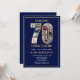 70th Birthday Photo Collage "Making 70 Look Good" Surprise Party Invitations. Celebrate the man in your life who's turning 70 with these elegant and festive party invitations featuring 11 photos of him with his friends and loved ones. The fonts are clean, modern, trendy, and easy to read in gold and white on a navy blue background.