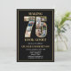 75th Birthday Photo Collage "Making 75 Look Good" Party Invitations. Celebrate the man in your life who's turning 75 with these elegant and festive party invitations featuring 11 photos of him with his friends and loved ones. The fonts are clean, modern, trendy, and easy to read in gold and white on a black background.