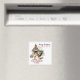 You will enjoy this square retro vintage holiday magnet. It is a cute chicken and rooster couple in a snow-covered and festive old barnyard. The caption says, Making a list chicken it twice. It is also saying Merry Christmas and your name here, and that is the section you are welcome to put your name on it and if you want to switch the Merry Christmas, you can certainly do that if you prefer. Place your order now.