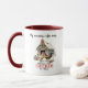 Enjoy this red and white funny Christmas two toned mug. This rustic Christmas barnyard scene is sure to bring a smile to your family and friends. Why not send them a gift so they can have their very own mug. It says My morning coffee mug on top, and you are free to change the message. Then on the bottom of the mug, it reads, Making a list chicken it twice. It has some adorable chickens in front of a festive rustic barn, and any chicken lover will be so happy to get this as their Christmas present, especially once you put your name up at the top!