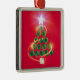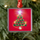 This Christmas tree is special as it is designed with a collage of malachite spheres with a quartz crystal base and a clear quarts crystal star on top. Sparkling gold glitter shimmers around the tree on a red background.