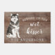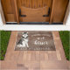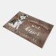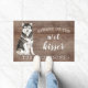 Funny beware of the wet kisser" Malamute Dog door mat set on a rustic faux background. Visit our shop to view a large assortment of dog breads