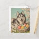 Celebrate Easter with the majestic Alaskan Malamute in this vintage-style postcard. Featuring the beloved dog surrounded by pastel Easter eggs, vibrant spring flowers, and festive seasonal accents, this design is perfect for Malamute lovers, collectors, and fans of timeless holiday art. A delightful keepsake to share the joy of Easter.