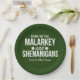 Funny Irish St. Patrick's Day Plates - Bring on the Malarkey and Shenanigans. Add your own custom message to the bottom. Perfect for private parties, bars, restaurants, St. Patrick's day parade parties or any Irish occasion.