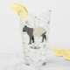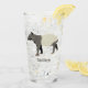 This drinking glass features my realistic style illustration of a Malayan or Asian Tapir in charcoal grey and cream. Below the graphic is a spot to add a name or other custom text in grey lettering. The illustration and name appear on both sides of this glass.