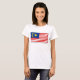 The front of this t-shirt boldly displays the Malaysian flag with its distinctive red and white stripes with yellow crescent and star over blue canton. This is matched at the back by an attractive map of Malaysia.