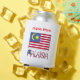 Personalised can cooler features the red, white, blue and yellow Malaysian flag with the word MALAYSIA below in the colours of the flag. Above, a space for your name for a unique, personalised look